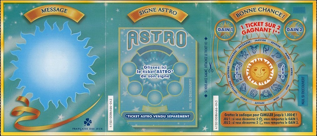 un volet pour insérer la carte astro achetée en plus, et un volet qui est en fait un ticket à gratter,