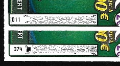 Cette émission existe en 2 versos: avec et sans tiret au-dessus du code barres, ainsi qu'un léger retour en bas, souvent à peine visible.