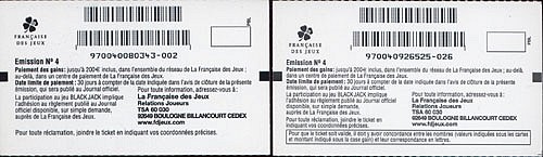 Une deuxième émission n°4 est sortie début 2004 (photo de droite) afin d'être en conformité avec le réglement (tous les tickets ont désormais le cartouche de concordance au verso).
