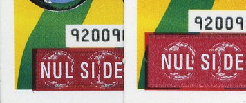 variété bandeau: il existe une impression raccourcie, le bandeau jaune a "mangé" le haut du ticket en se positionnant trop bas.