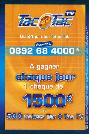 Jeu téléphonique surtaxé avec obligation d'achat (on joue à partir d'un ticket acheté).