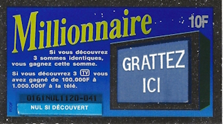 Pour ses 15 ans de réussite du millionnaire, la FDJ nous offre un bonus. Le ticket 15 ans est donc le code jeu 40401, et son bonus le 40402. A gagner: un ticket millionnaire, un séjour ou rien du tout.